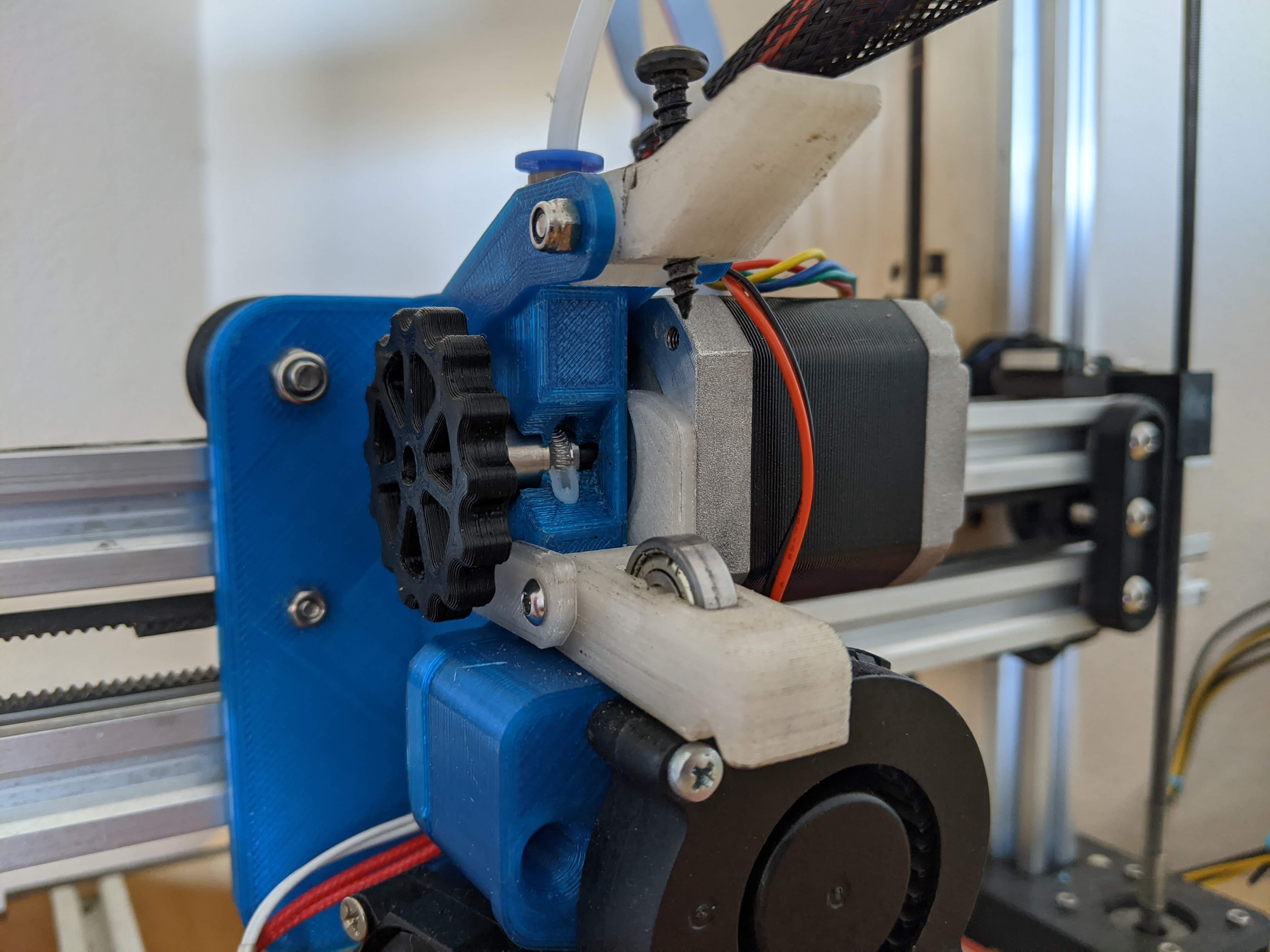 Im my quest to push the ancient Makerfarm Prusa i3v to its maximum potential, I’ve once again redesigned the X carriage and extruder. Previous to this modification, I was using a bowden tube and the VORON Flex Bowden Extruder designed by russiancatfood on thingiverse. This was working well, but in my experience all bowden setups have left something to be desired when it comes to retraction tuning. With flexibles and materials sensitive to retraction (PETG) this becomes a bigger issue. For this reason I’ve decided to go back to a direct drive extruder.
